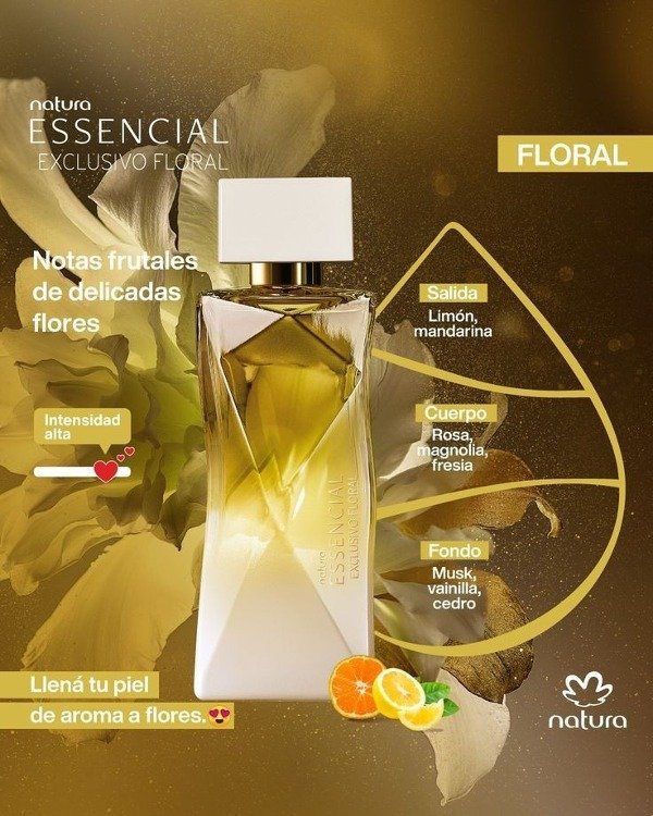 Camino olfativo: Floral. Limón, mandarina, rosa, fresia, vainilla.