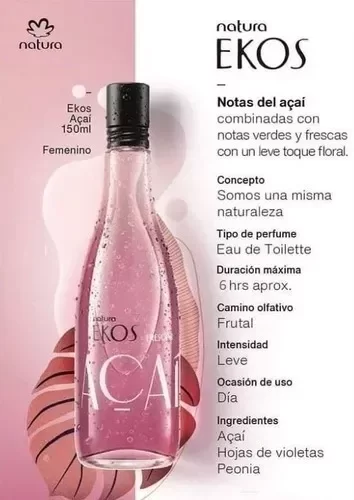 Con extracto aromático de Acaí, fruto icóno de la Amazonia, esta fragancia combina flores suaves y notas frescascon toque de frutas rojas y violetas.
