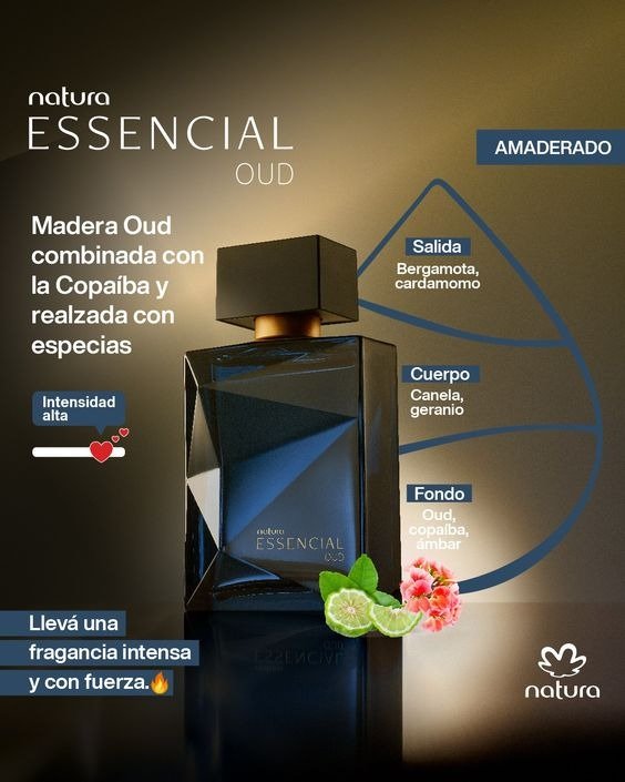 Camino Olfativo: Amaderado Intenso, Oud, Copaíba, Cardamomo.